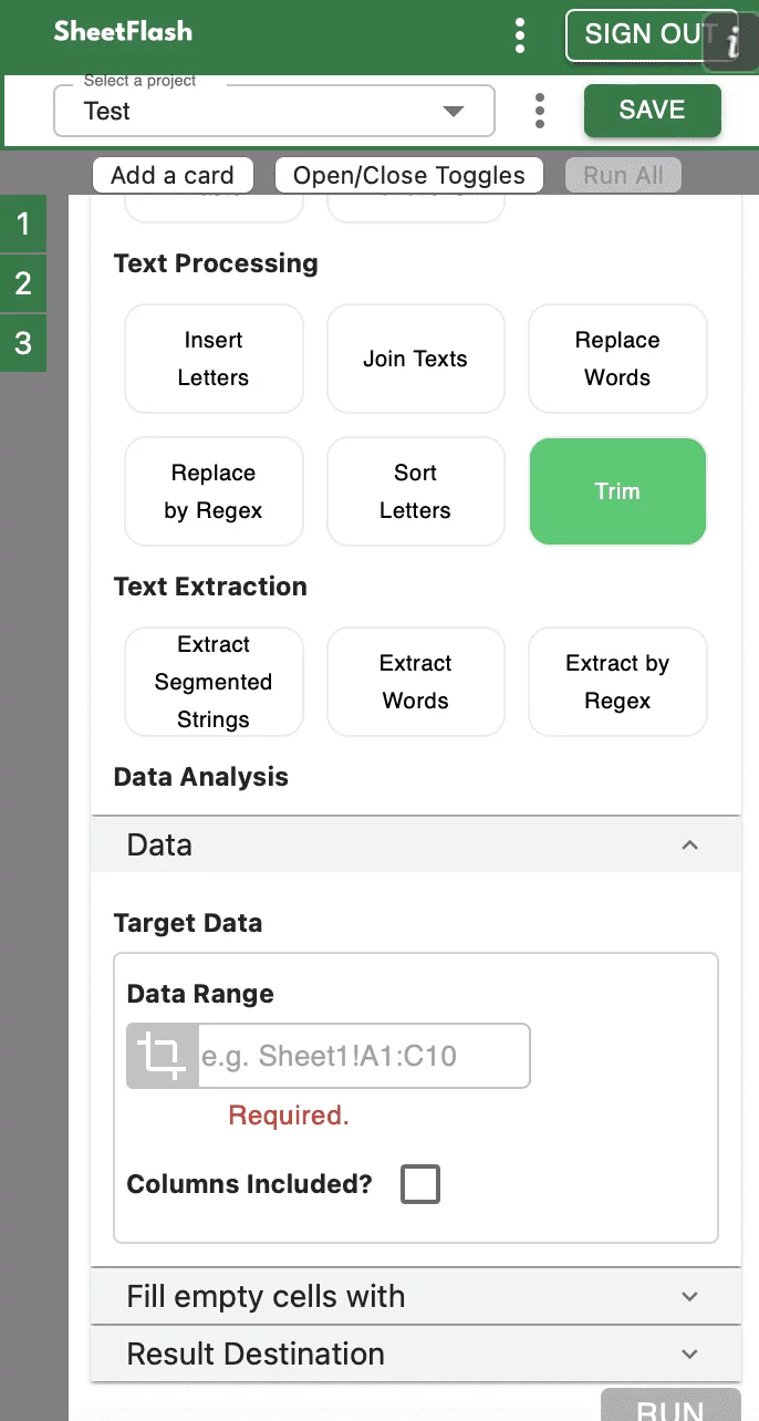 SheetFlash addresses all the challenges mentioned above. With SheetFlash, you can effortlessly trim extra spaces from text entries across multiple cells, ensuring accuracy and saving time.